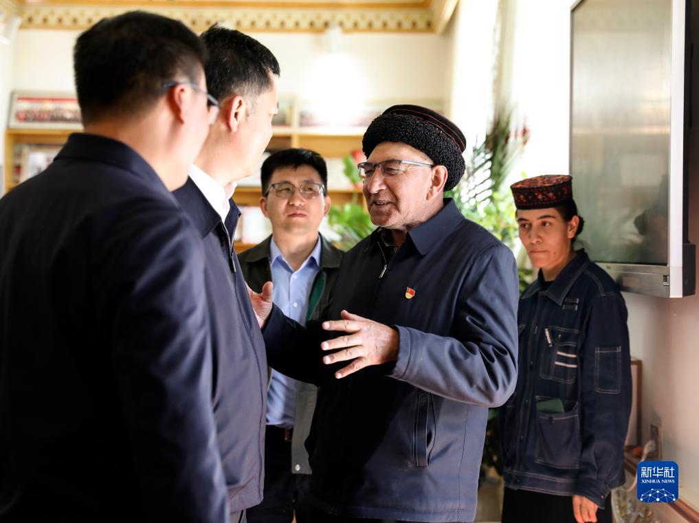 9月4日,巴依卡老人向前來(lái)參觀(guān)的人們介紹自己和家人護邊的經(jīng)歷。新華社記者 程婷婷 攝