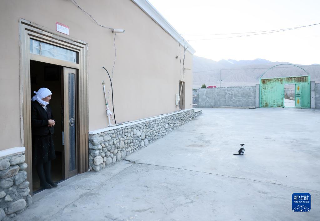 9月5日,拉齊尼的妻子阿米娜·阿力甫夏站在家門(mén)口。新華社記者 蘭紅光 攝