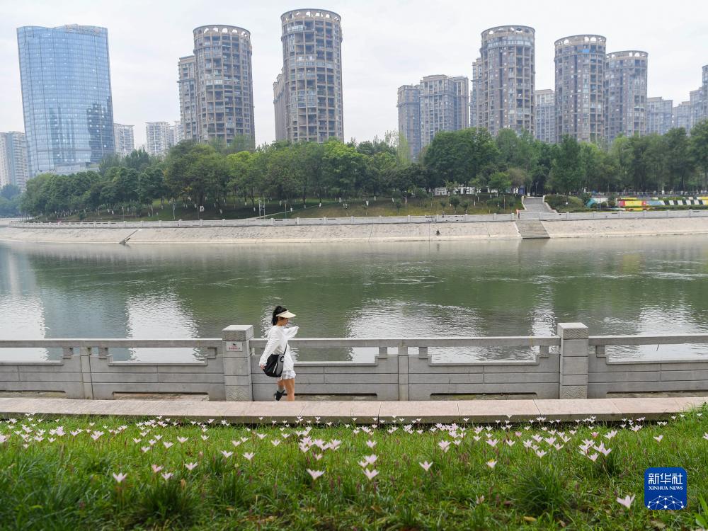胡月在成都市錦江區城市綠道練習滑板(6月20日攝)。新華社記者 王曦 攝