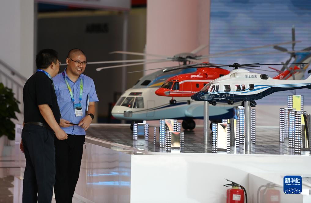 9月13日,參展人員在第六屆中國天津國際直升機博覽會(huì )會(huì )場(chǎng)交流。