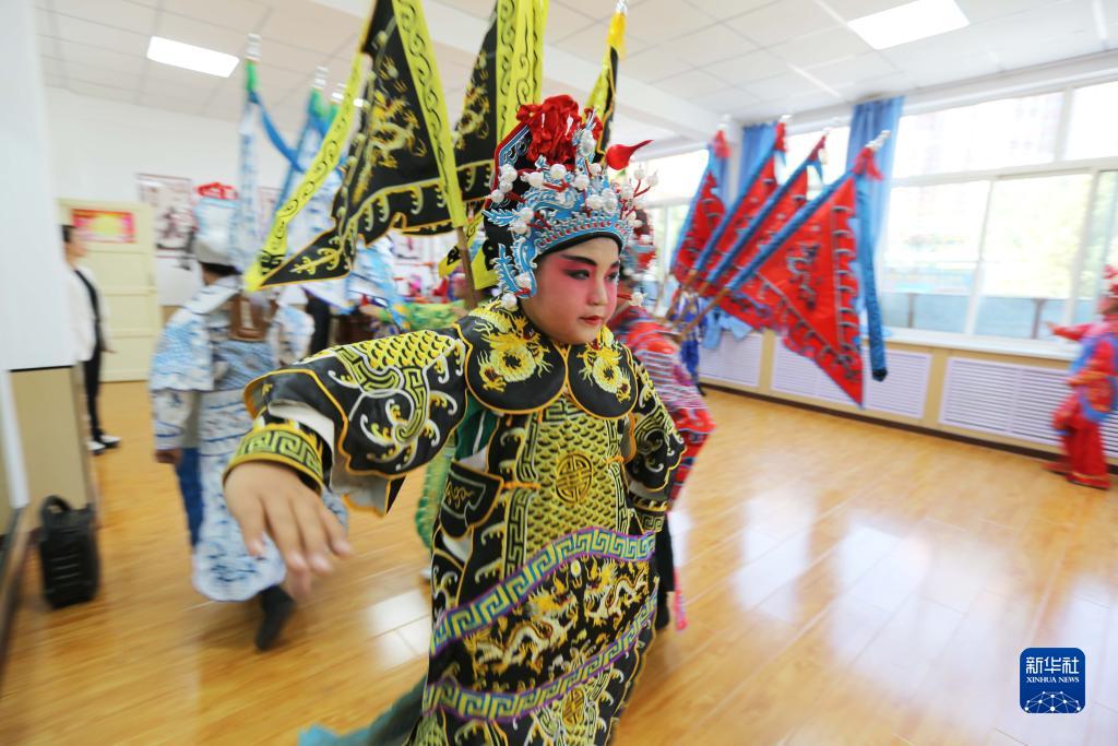 9月13日,在甘肅省定西市安定區福臺小學(xué),戲曲社團的學(xué)生們在排練《秦腔聯(lián)唱》。