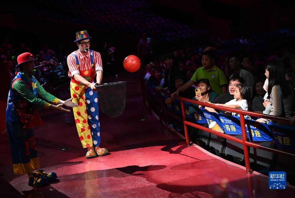 9月13日,在隆承國際馬戲度假區,演員與觀(guān)眾互動(dòng)。