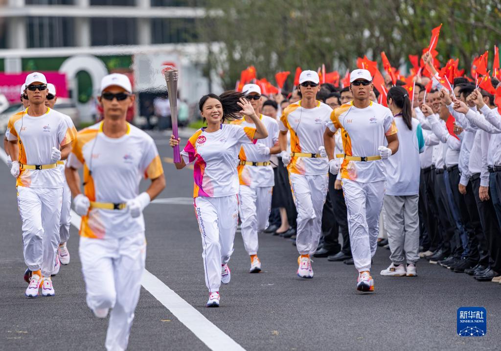 當日,杭州亞運會(huì )火炬在浙江省臺州傳遞。