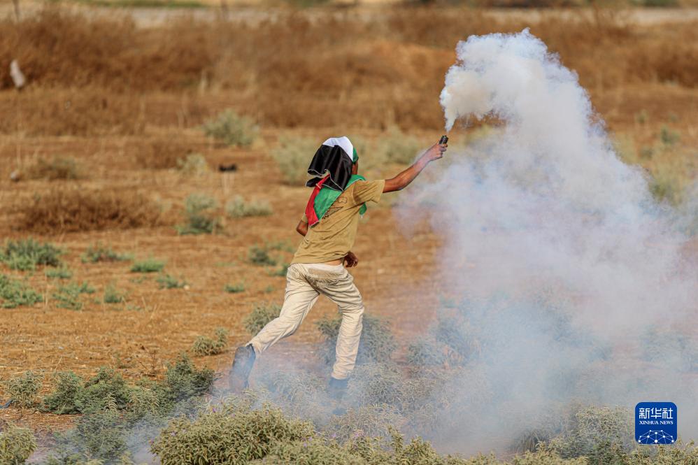 9月13日,在位于加沙城東部與以色列交界地區的圍欄附近,巴勒斯坦人參與示威活動(dòng)。