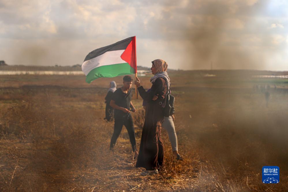 9月13日,在位于加沙城東部與以色列交界地區的圍欄附近,巴勒斯坦人參與示威活動(dòng)。