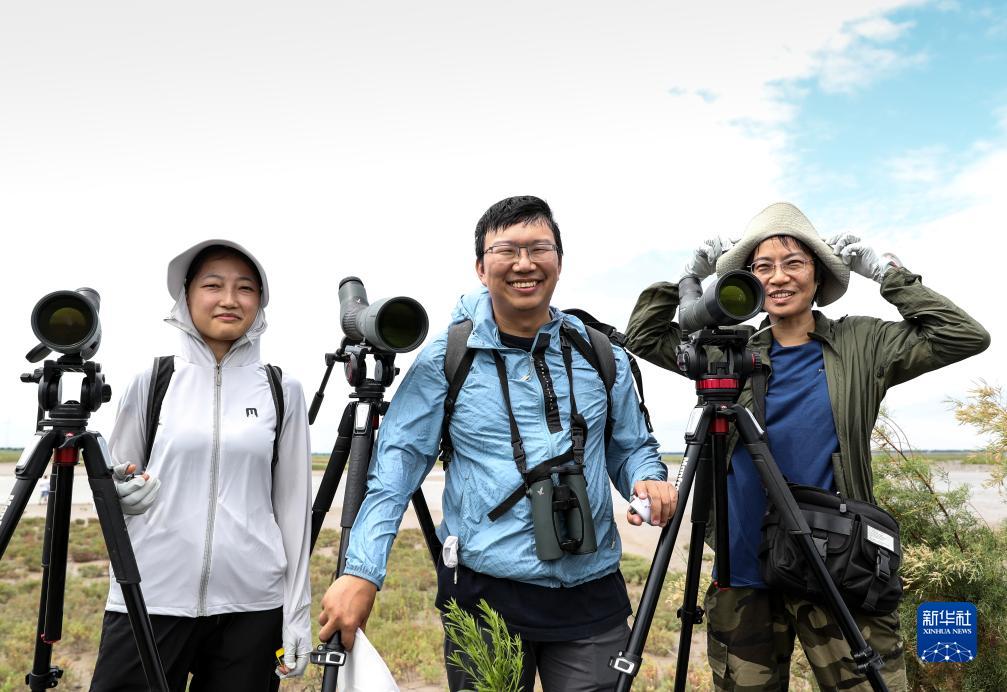 賈亦飛(中)和他的團隊成員楊洪燕(右)、付婷(左)(2023年8月19日攝)。賈亦飛副教授來(lái)自北京林業(yè)大學(xué)生態(tài)與自然保護學(xué)院東亞-澳大利西亞候鳥(niǎo)遷徙研究中心,是東臺野外研究站的負責人。他從2014年開(kāi)始研究中國濱海濕地保護與管理,通過(guò)長(cháng)期的鳥(niǎo)類(lèi)與底棲動(dòng)物監測,系統研究條子泥濕地與關(guān)鍵水鳥(niǎo)-底棲動(dòng)物-環(huán)境耦合關(guān)系,從事極危物種勺嘴鷸等小型鸻鷸類(lèi)食物資源、瀕危物種小青腳鷸的種群動(dòng)態(tài)等多個(gè)方面研究工作。新華社記者 楊磊 攝