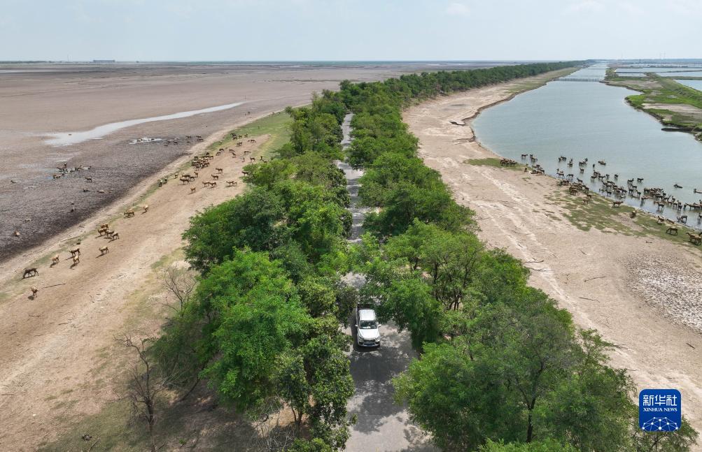 劉彬驅車(chē)在保護區巡護(2023年8月21日攝,無(wú)人機照片)。1982年出生的劉彬,因鳥(niǎo)與麋鹿結緣。2009年,江蘇大豐麋鹿國家級自然保護區首次發(fā)現東方白鸛,正在安徽大學(xué)攻讀鳥(niǎo)類(lèi)學(xué)碩士的劉彬跟隨導師來(lái)到大豐,保護區的生物多樣性深深吸引了他。同年畢業(yè)后,劉彬進(jìn)入到保護區工作。野外監測,為麋鹿拌飼料,救護受傷、被困麋鹿……這一干就是14年。作為一名博士,這些年,劉彬一直堅持開(kāi)展科研工作:為保護區沒(méi)有記錄過(guò)的鳥(niǎo)類(lèi)做環(huán)志,研究人類(lèi)活動(dòng)對野化麋鹿的影響,還與高校合作研發(fā)與麋鹿相關(guān)的益生菌。新華社記者 季春鵬 攝