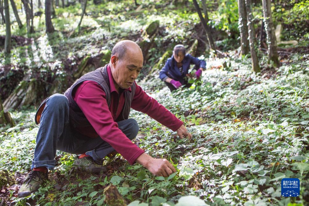 9月13日,在重慶市城口縣高燕鎮紅軍村林下黃連種植基地,村民在除雜草。