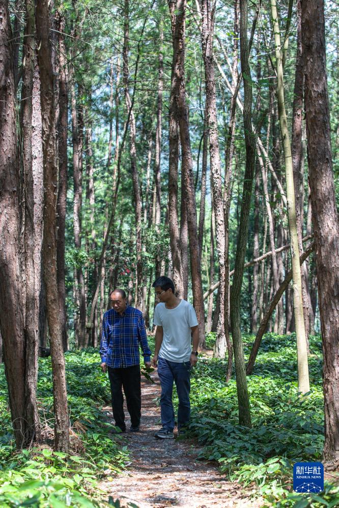 9月13日,在重慶市城口縣高燕鎮星光村箭葉淫羊藿種植基地,駐村第一書(shū)記馬凱軍(右)和駐村工作隊隊員蔡道武查看箭葉淫羊藿的長(cháng)勢情況。