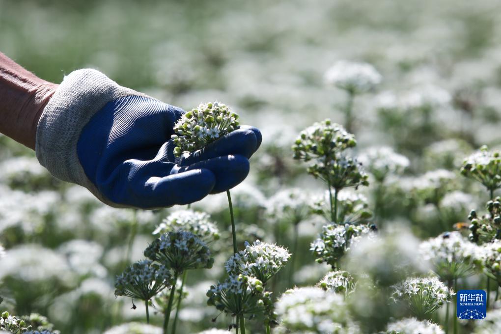 眼下正值韭花成熟上市的季節,山東省淄博市高青縣的農民們忙著(zhù)采收韭花,供應市場(chǎng)。