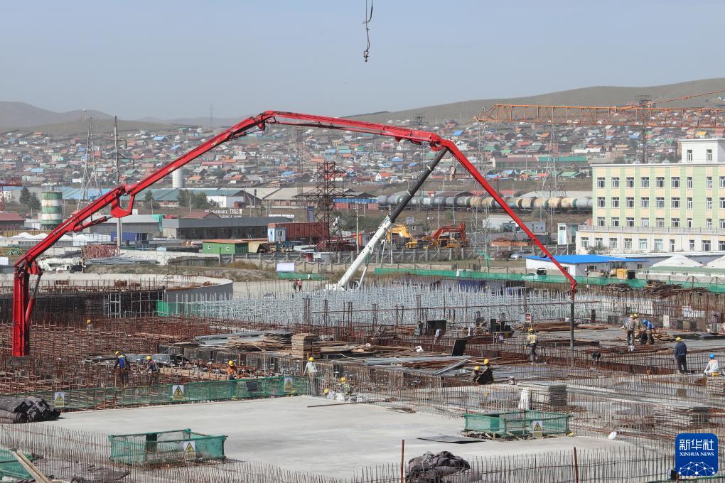 9月13日,在蒙古國首都烏蘭巴托附近,工人們在烏蘭巴托中央污水處理廠(chǎng)項目工地工作。