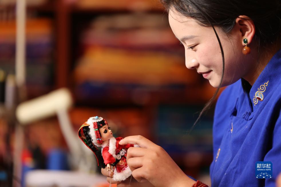 在四川省阿壩藏族羌族自治州若爾蓋縣唐克鎮白河社區的手工合作社內,擺放著(zhù)眾多精致漂亮的手工娃娃,它們服飾各異,大小不同,頗具民族風(fēng)情。它們的藏族名字叫“亞一則則”,意為“吉祥娃娃”。