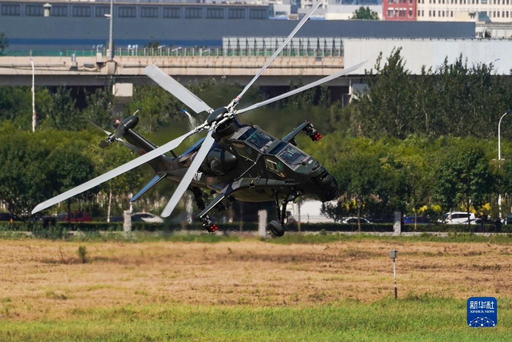 9月14日,在第六屆中國天津國際直升機博覽會(huì )開(kāi)幕式上,陸軍“風(fēng)雷”飛行表演隊直-10武裝直升機進(jìn)行飛行表演。