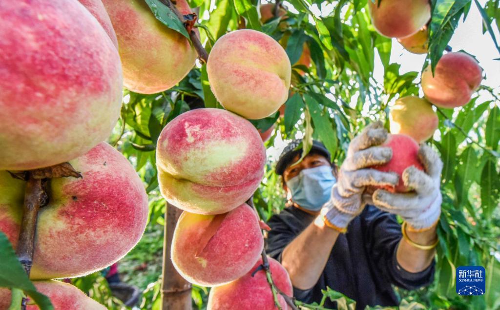 9月11日,河北省遵化市東舊寨鎮五虎嶺村農民在采摘鮮桃。
