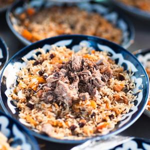 中亞抓飯中心位于塔什干電視塔附近,被人們譽(yù)為“中亞第一”抓飯中心,每天向人們提供美味的抓飯。抓飯是烏茲別克斯坦的傳統美食,其主料為大米、胡蘿卜、羊肉,不同地方的抓飯風(fēng)味各異。抓飯的制作過(guò)程講究嚴謹,主料與香料的融合令人唇齒留香,回味無(wú)窮。