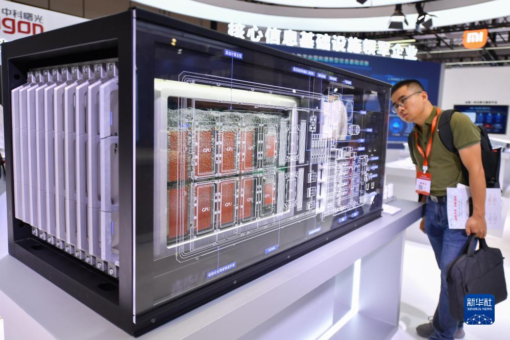 9月15日,參觀(guān)者在2023世界計算大會(huì )專(zhuān)題展上參觀(guān)浸沒(méi)相變液冷計算機。