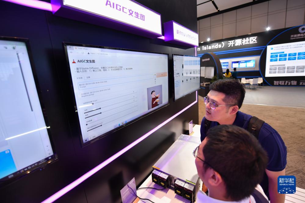 9月15日,參觀(guān)者在2023世界計算大會(huì )專(zhuān)題展上了解AIGC文生圖。