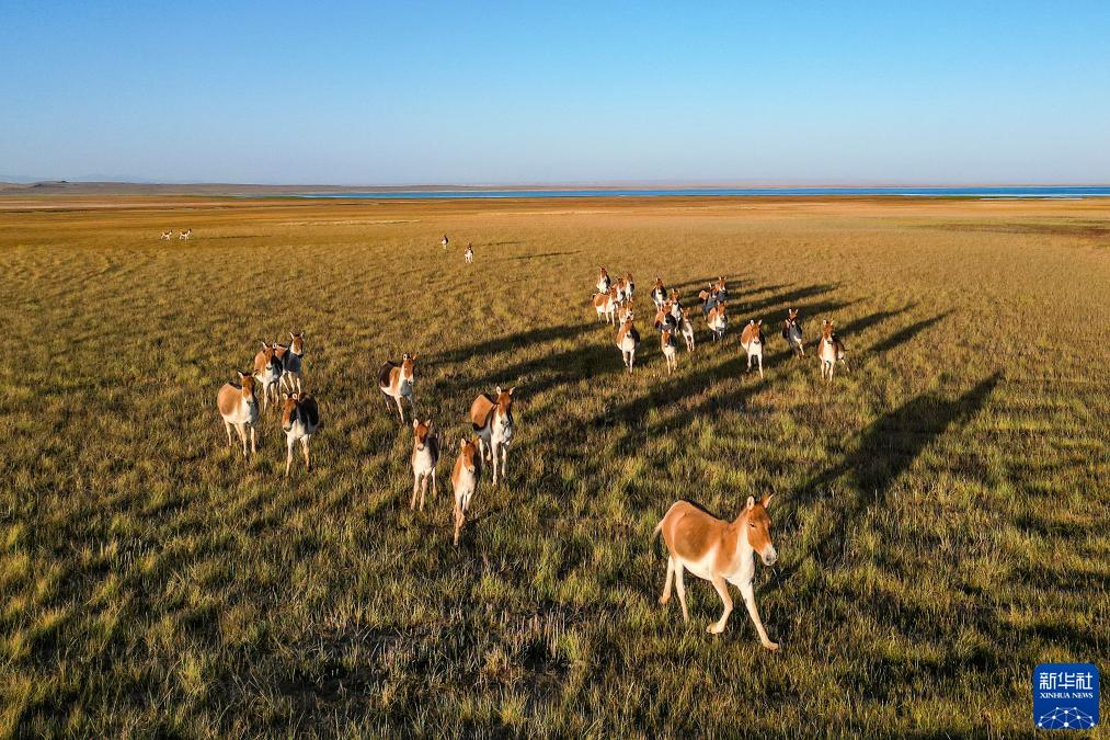 9月12日在阿爾金山國家級自然保護區拍攝的藏野驢(無(wú)人機照片)。