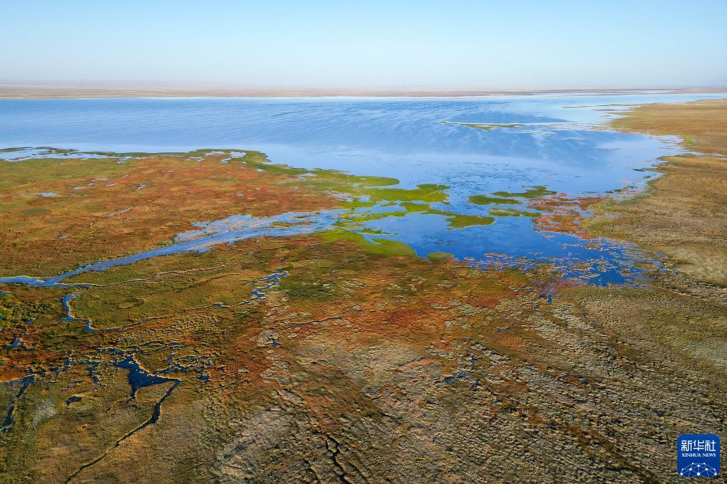 9月12日在阿爾金山國家級自然保護區拍攝的依協(xié)克帕提湖(無(wú)人機照片)。