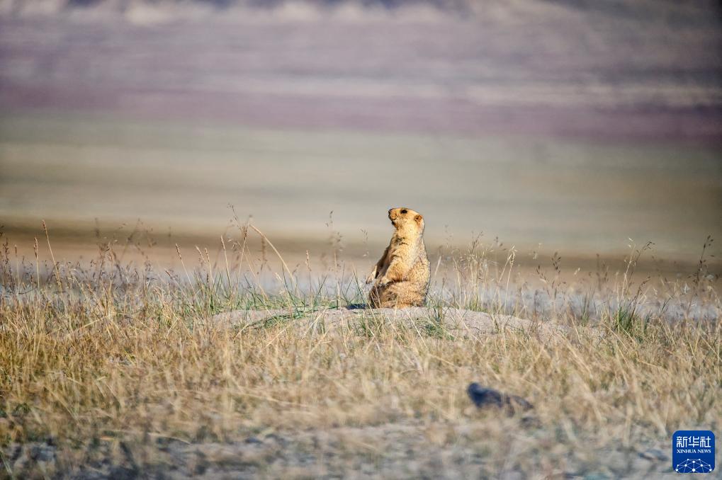 9月14日在阿爾金山國家級自然保護區拍攝的喜馬拉雅旱獺。