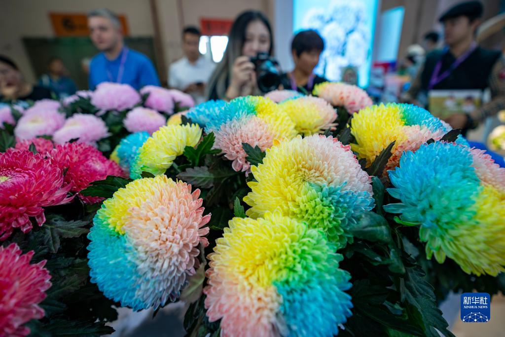 這是9月15日在第二十一屆中國昆明國際花卉展上拍攝的“七彩云菊”。
