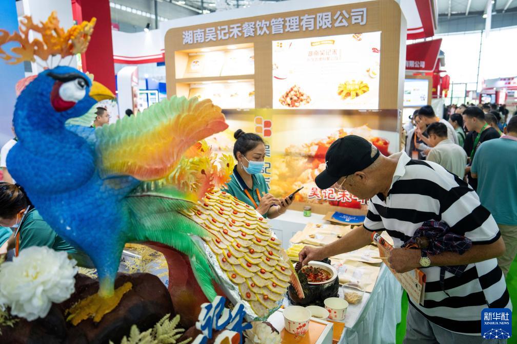 9月15日,在長(cháng)沙國際會(huì )展中心,觀(guān)眾在品嘗小吃。