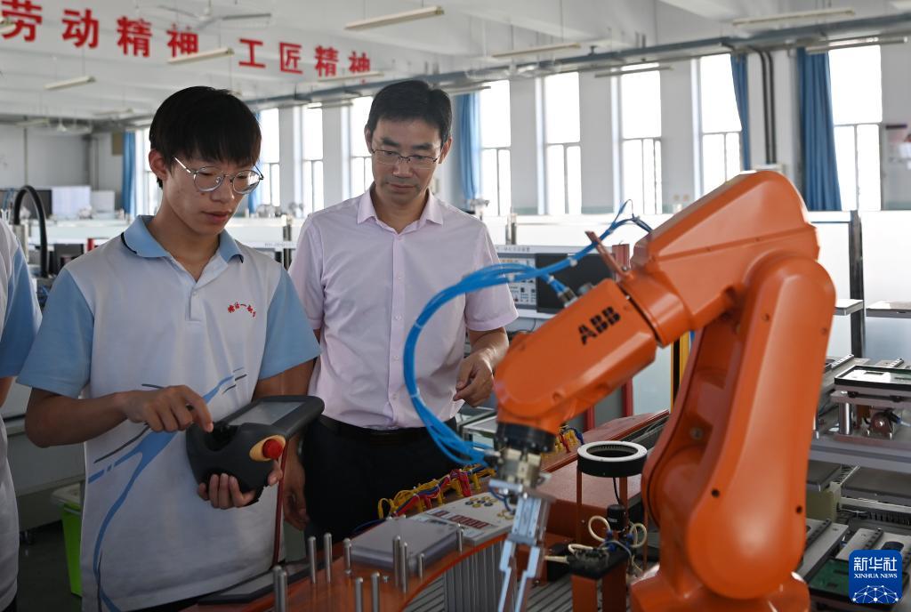 在日常教學(xué)中,他經(jīng)常手把手指導學(xué)生操作設備、提高職業(yè)技能。前不久,翟津獲評2023年全國教書(shū)育人楷模。翟津說(shuō):“我在早期教學(xué)時(shí),以培養產(chǎn)線(xiàn)上的熟練工為主,但現在更多地是要培養智能制造應用技術(shù)領(lǐng)域的高素質(zhì)技能人才,為推動(dòng)現代職業(yè)教育高質(zhì)量發(fā)展貢獻力量?!?/p>