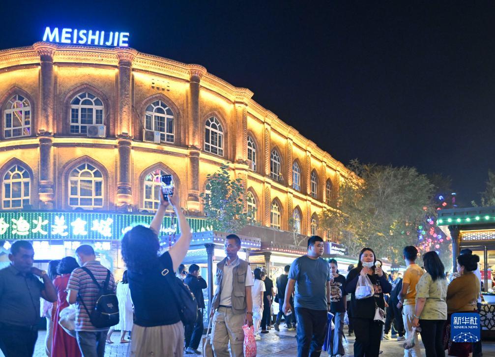夜幕降臨,新疆喀什市中心的喀什古城景區流光溢彩,游人如織。近年來(lái),喀什市豐富夜間消費服務(wù)供給、完善夜間配套保障、打造夜生活集聚效應,激發(fā)城市夜間消費活力。