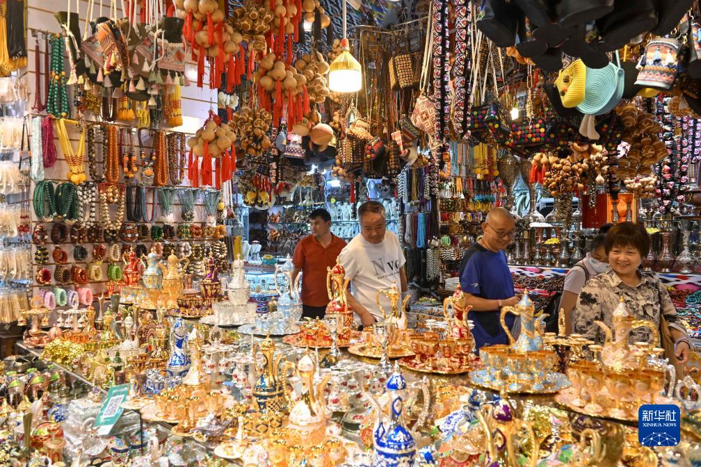 9月14日晚,游客在新疆喀什古城景區游覽購物。