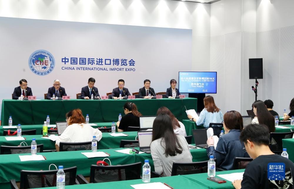 這是9月15日拍攝的第六屆進(jìn)博會(huì )開(kāi)幕倒計時(shí)50天新聞通氣會(huì )現場(chǎng)。