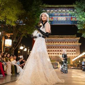9月15日晚,2024春夏北京時(shí)裝周開(kāi)幕式在北京前門(mén)大街舉行,在開(kāi)幕式上,勞倫斯·許攜高級定制時(shí)裝上演“壯美中軸線(xiàn)”時(shí)尚大秀。