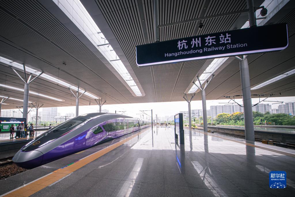 當日,“亞運版”復興號智能動(dòng)車(chē)組列車(chē)正式載客運營(yíng)。乘客乘坐列車(chē)可通達杭州、諸暨、義烏、金華等地。