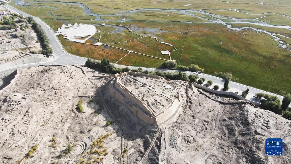 位于新疆塔什庫爾干塔吉克自治縣的石頭城遺址與金草灘濕地相鄰(9月6日攝,無(wú)人機照片)。