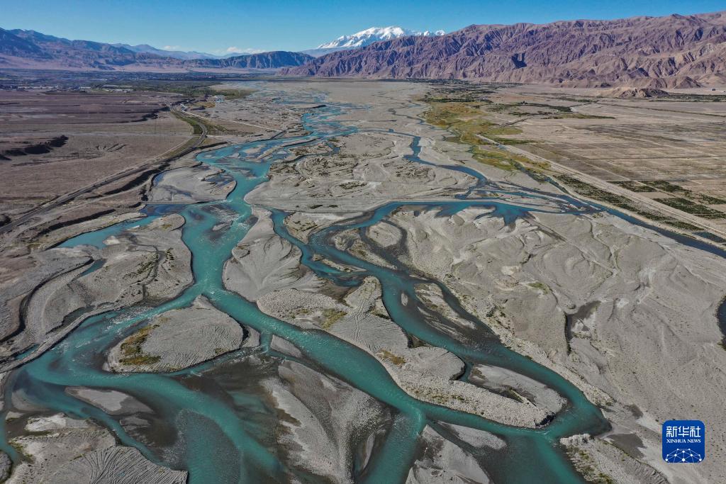 奔流的塔什庫爾干河(8月29日攝,無(wú)人機照片)。