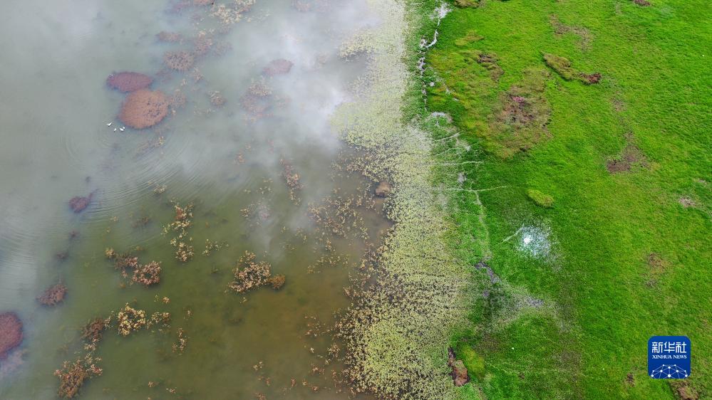 這是甘肅尕海則岔國家級自然保護區尕海濕地的景色(7月7日攝,無(wú)人機照片)。