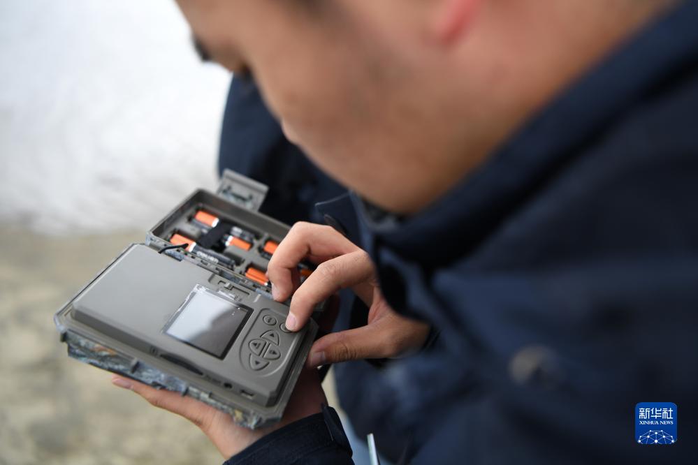 甘肅黃河首曲國家級自然保護區管護中心曼日瑪保護站的工作人員在保護區內檢查紅外相機的工作情況(7月5日攝)。