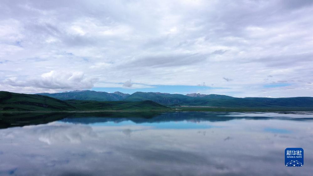 這是甘肅尕海則岔國家級自然保護區尕海湖的景色(7月7日攝,無(wú)人機照片)。