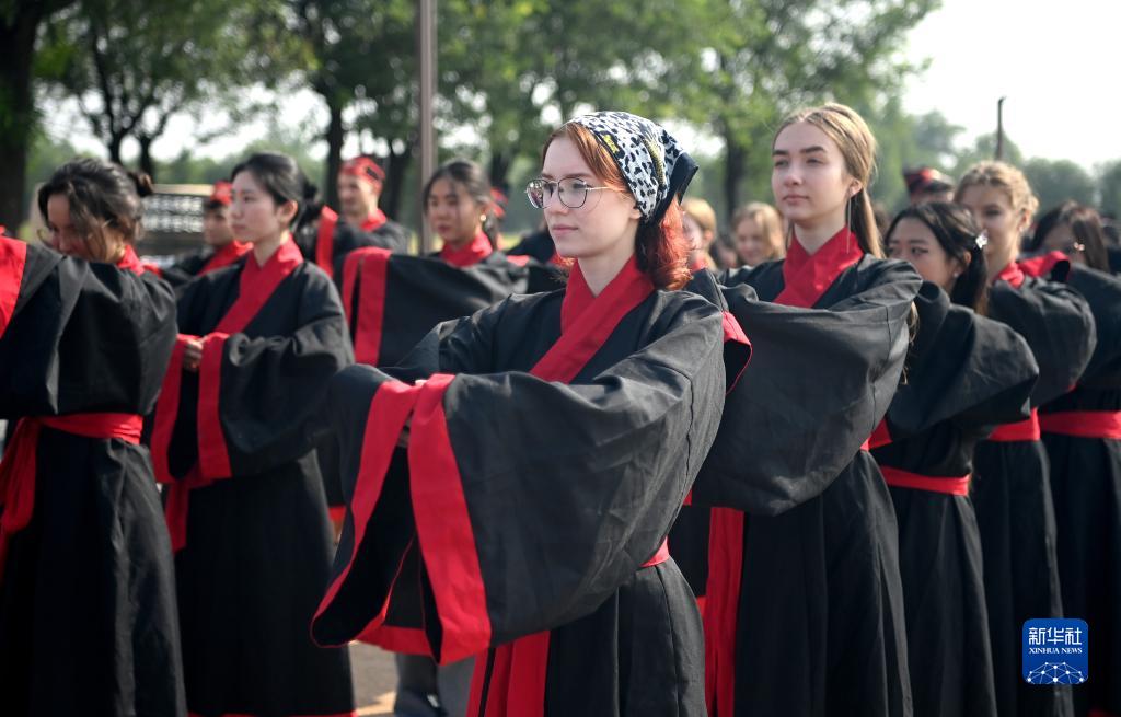 9月16日,中外大學(xué)生身著(zhù)漢代服飾感受中國傳統文化。