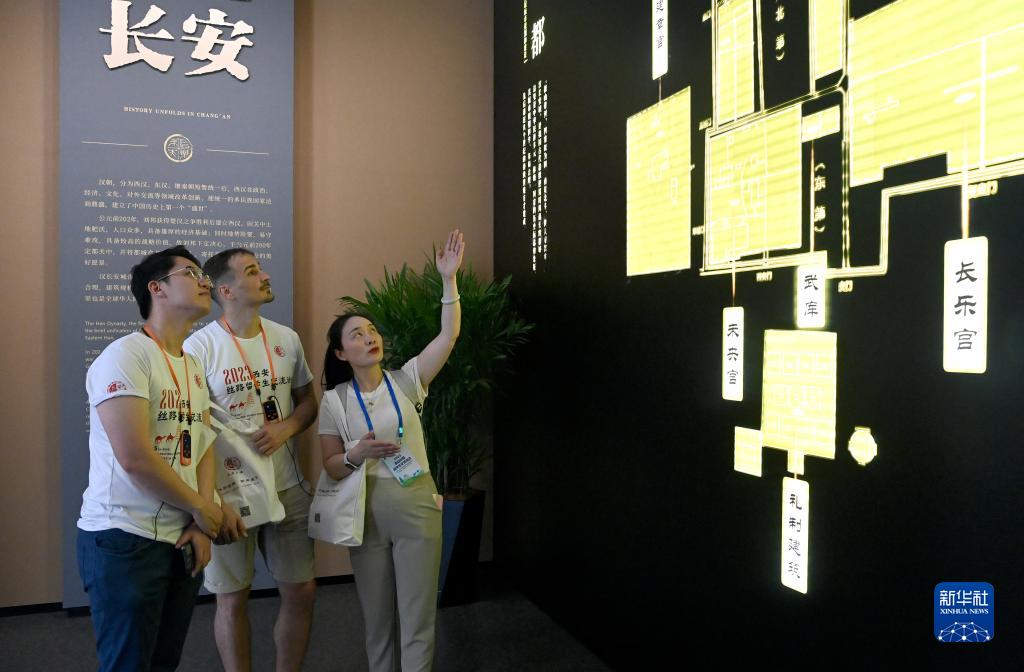 9月16日,外國留學(xué)生在西安未央區漢長(cháng)安城遺址內的漢長(cháng)安城歷史文化與遺址保護展示廳參觀(guān)。