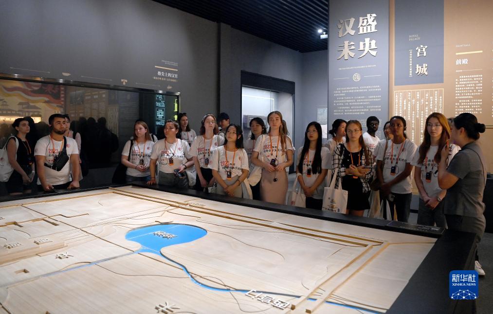9月16日,外國留學(xué)生在西安未央區漢長(cháng)安城遺址內的漢長(cháng)安城歷史文化與遺址保護展示廳參觀(guān)。