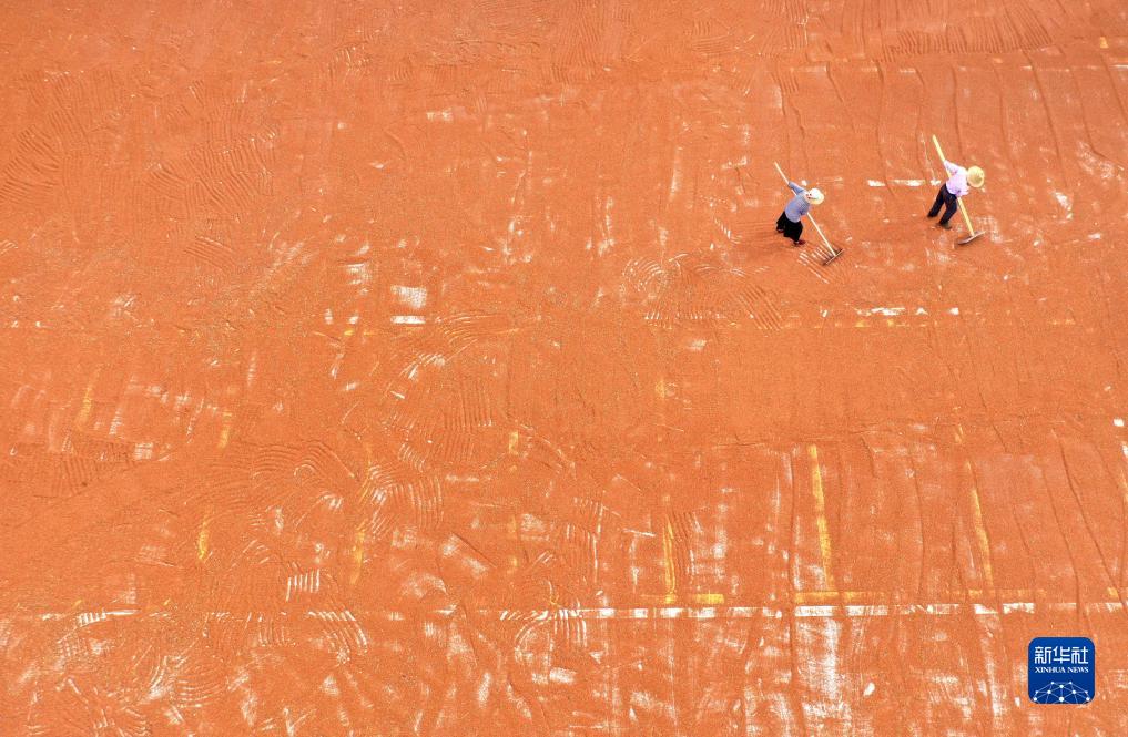 金秋時(shí)節,各地農民抓住晴好天氣晾曬收獲的高粱、水稻、玉米等糧食作物,呈現多彩的豐收圖景。