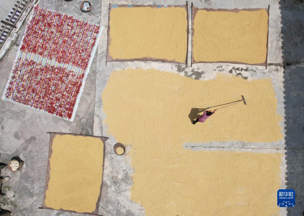 金秋時(shí)節,各地農民抓住晴好天氣晾曬收獲的高粱、水稻、玉米等糧食作物,呈現多彩的豐收圖景。