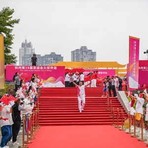 當日,杭州亞運會(huì )火炬在浙江省金華傳遞。