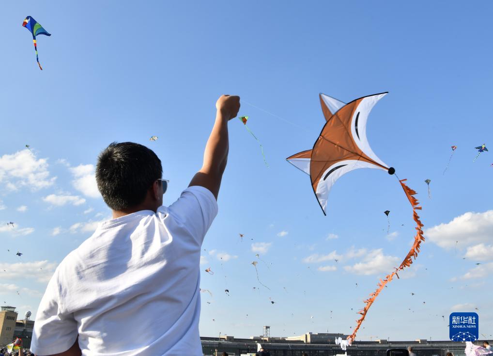 9月16日,一名男子在德國柏林放風(fēng)箏。