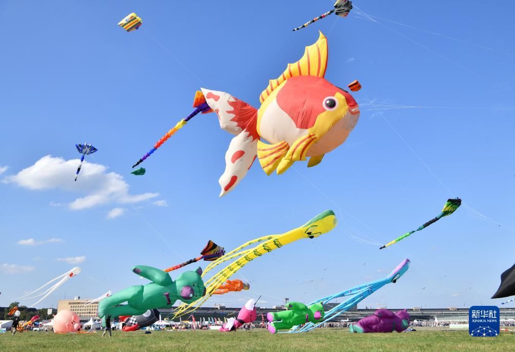 當日,德國柏林舉行2023年巨型風(fēng)箏節?,F場(chǎng)放飛了章魚(yú)、青蛙、金魚(yú)、小熊等造型的巨型風(fēng)箏,還吸引眾多市民前來(lái)放風(fēng)箏。