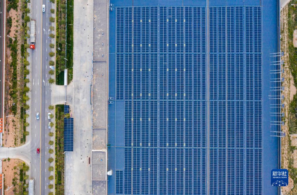 這是9月15日拍攝的位于寧夏吳忠市同心縣的清潔能源產(chǎn)業(yè)園內某企業(yè)屋頂已并網(wǎng)發(fā)電的光伏板(無(wú)人機照片)。