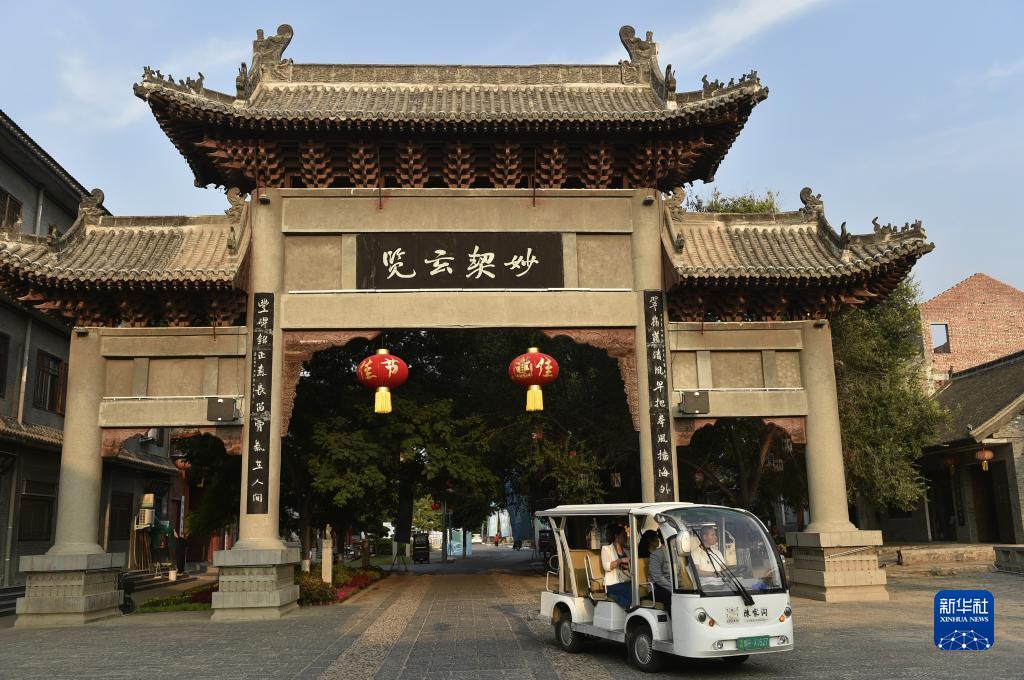 9月15日,游人乘坐電瓶車(chē)在河南溫縣陳家溝游覽。