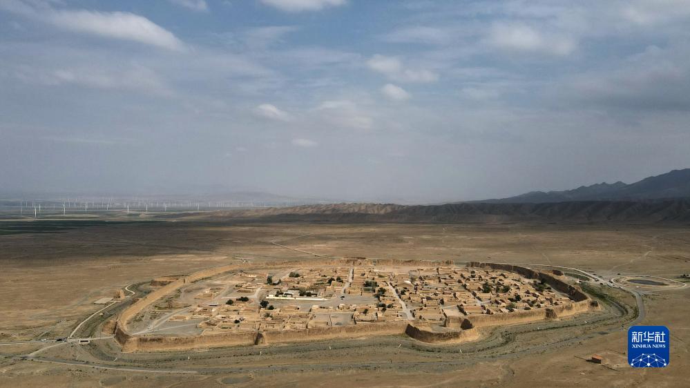 這是位于甘肅省白銀市景泰縣寺灘鄉的永泰古城。永泰古城始建于明萬(wàn)歷年間,為當時(shí)的軍事要塞,因形似金龜,又名“永泰龜城”。古城城圍周長(cháng)1.7公里,高12米,2006年被命名為全國重點(diǎn)文物保護單位(7月11日攝,無(wú)人機照片)。