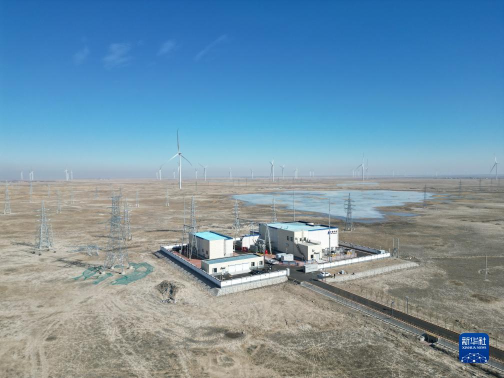 吉林省通榆縣華能什花道風(fēng)電場(chǎng)(2023年3月8日攝,無(wú)人機照片)。