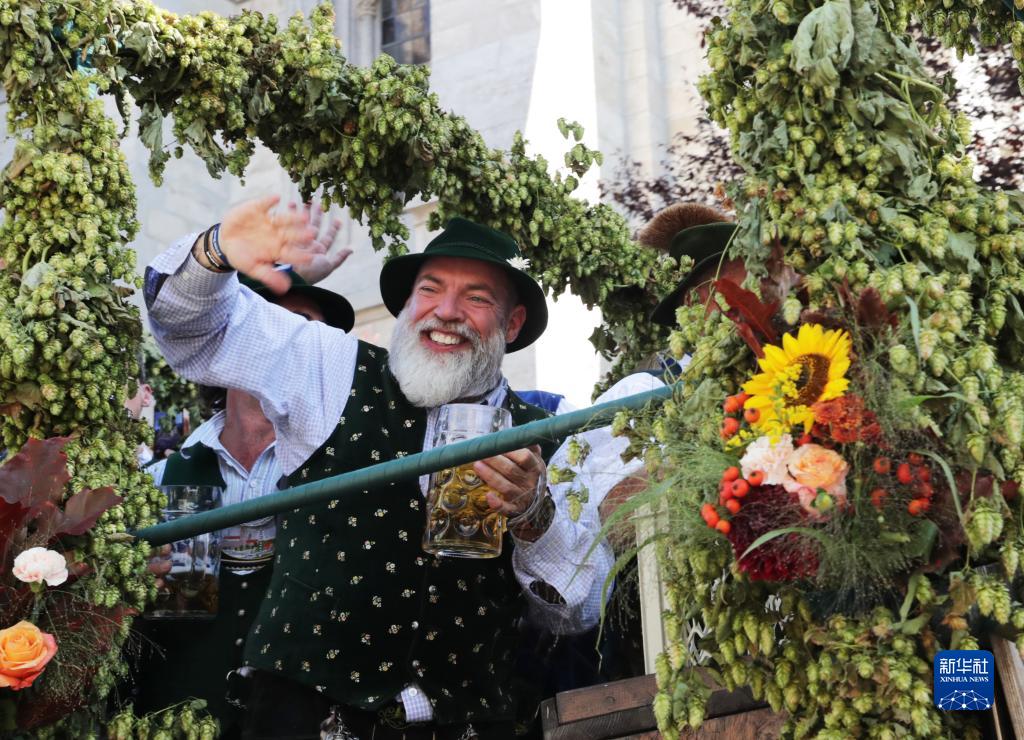 9月16日,人們參加德國慕尼黑啤酒節開(kāi)幕大游行。